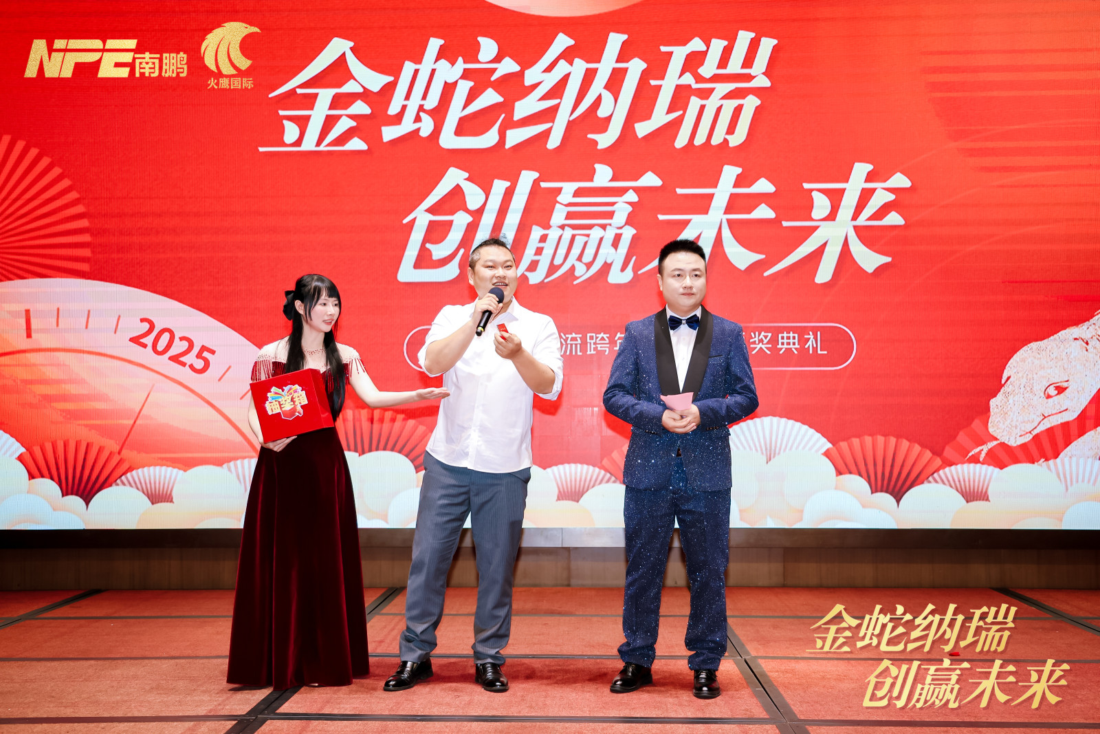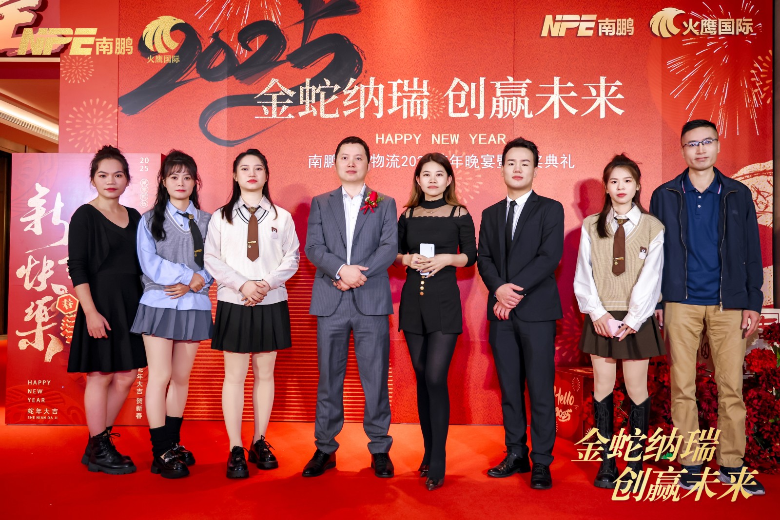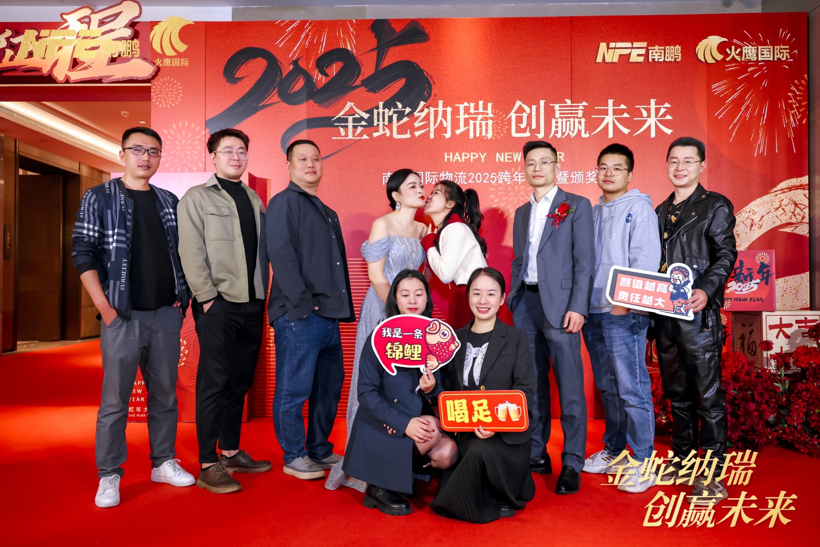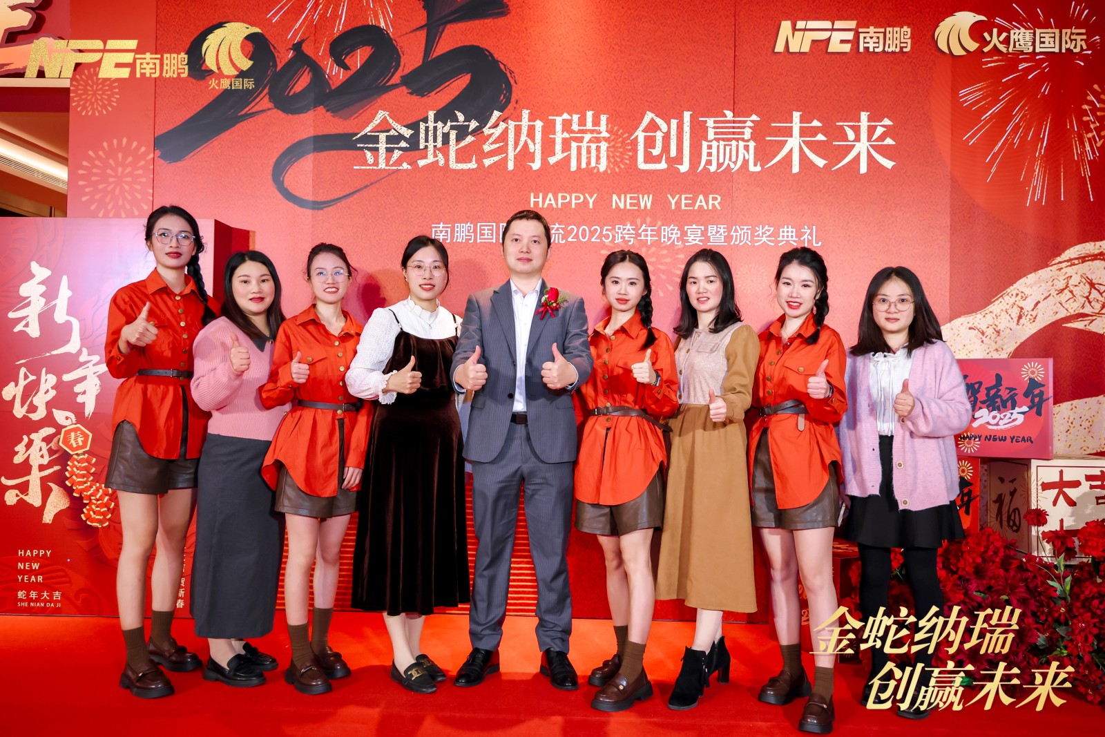 12月31日21:00,南鵬國際物流 “金蛇納端,創(chuàng )贏(yíng)未來(lái)”2025跨年盛典圓滿(mǎn)收官??缒晖頃?huì )當天,南鵬董事長(cháng)陳天輝、總經(jīng)理肖智士攜分公司總經(jīng)理耿傳奇、龍哲斌、陳浩、陳超、謝嬌嬌、呂順、羅友國,業(yè)務(wù)總監彭劍、林娜及全體伙伴,均以盛裝姿態(tài)出席此次盛會(huì ),彰顯團隊風(fēng)采,共襄盛舉。