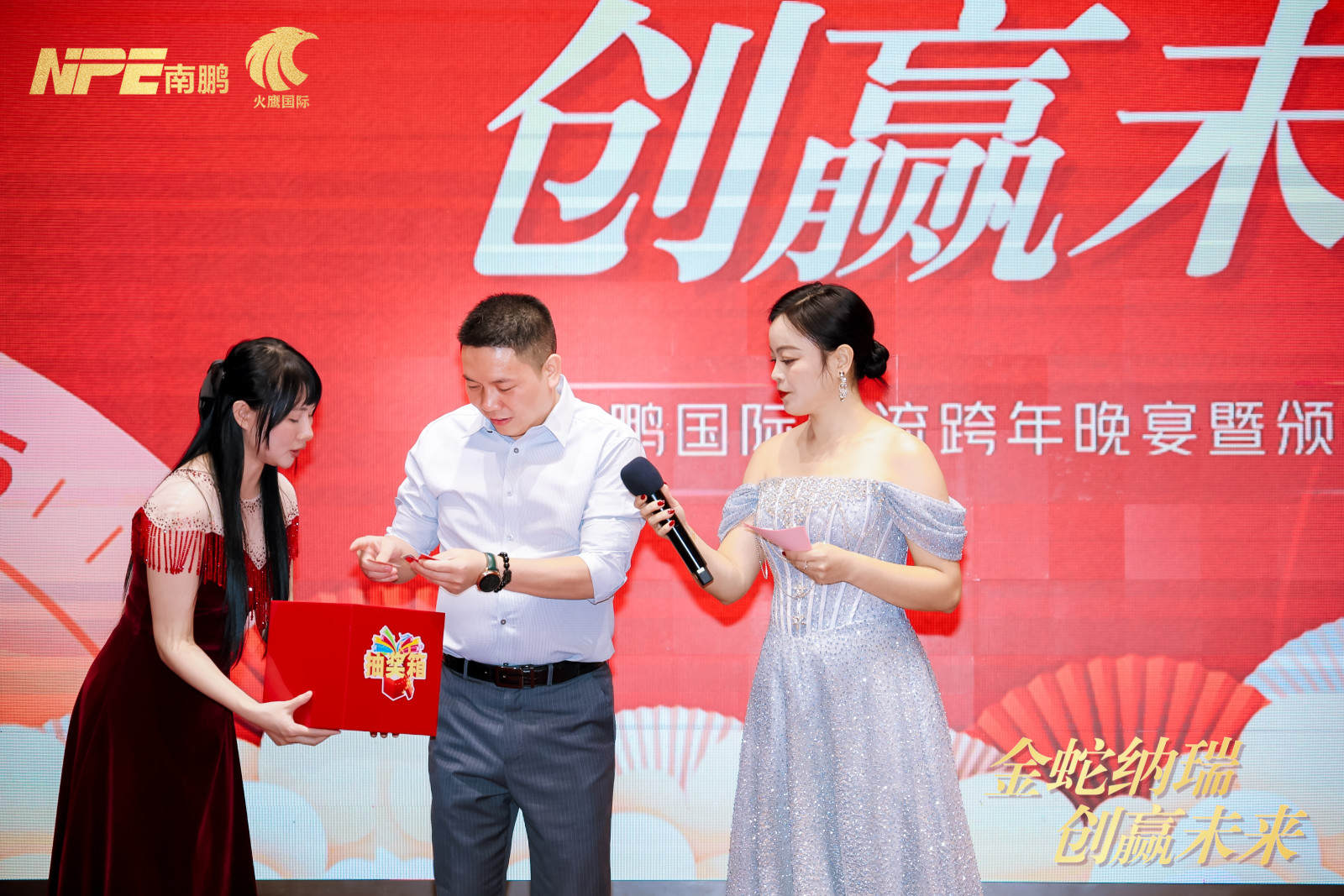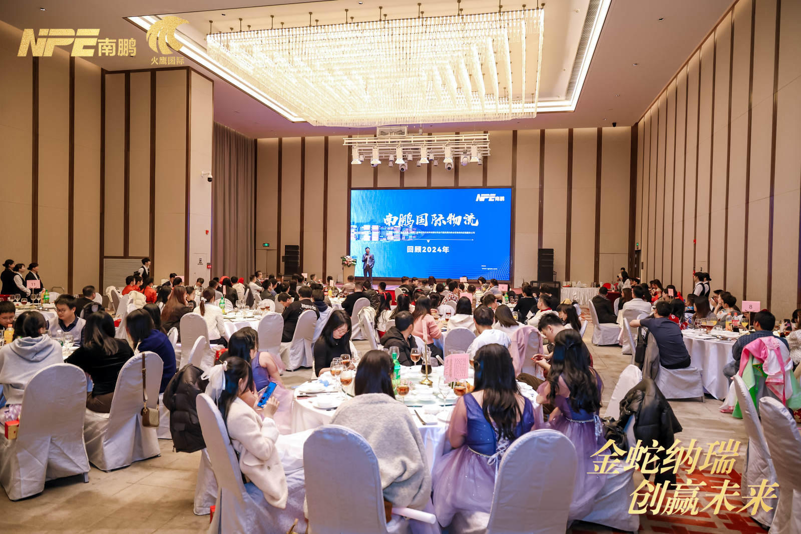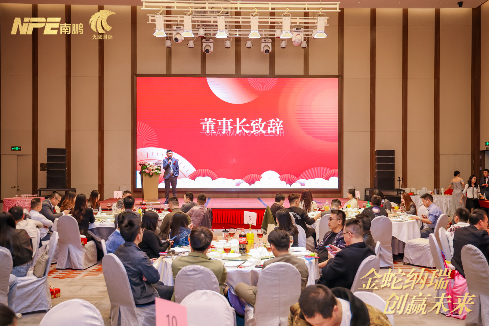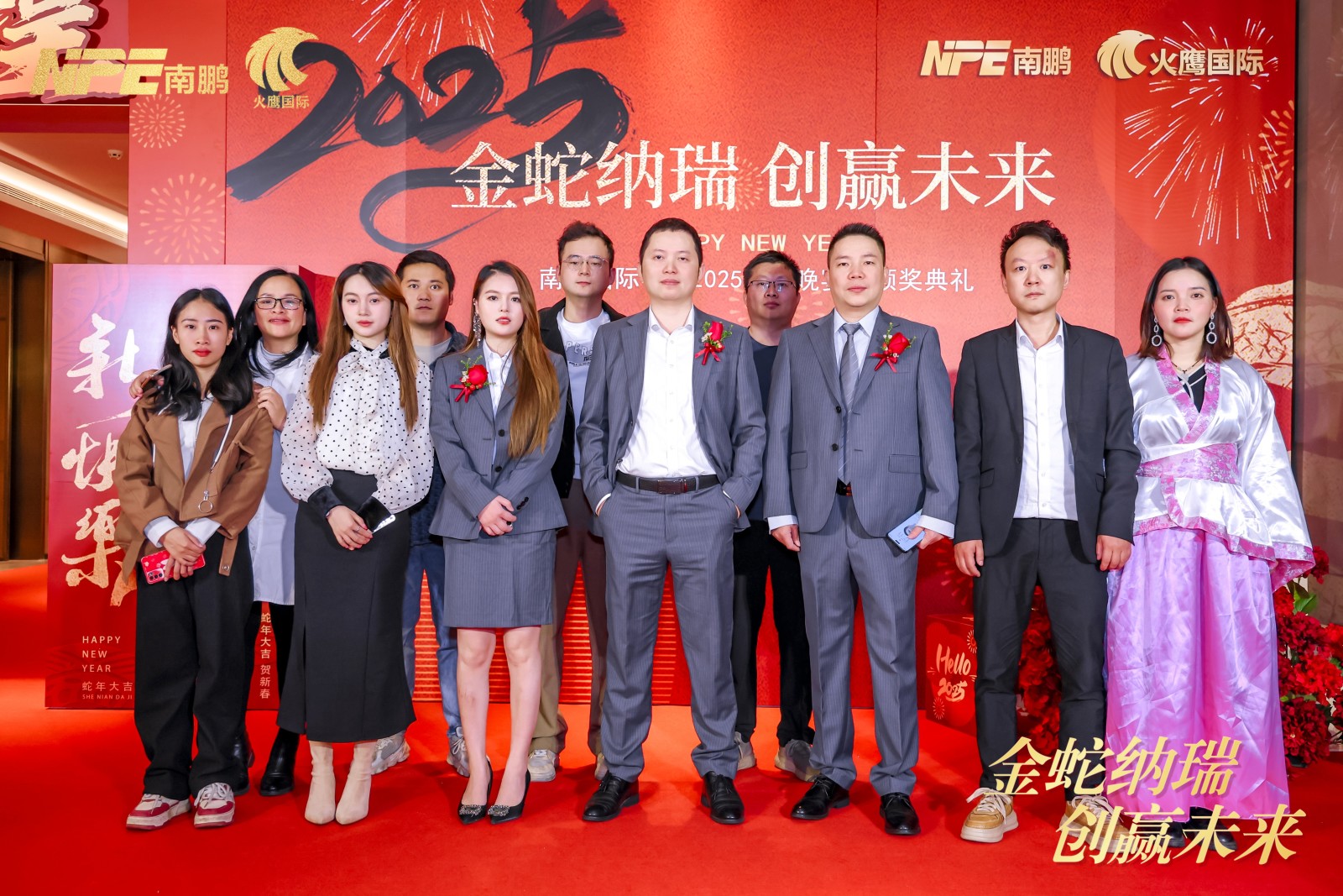 12月31日21:00,南鵬國際物流 “金蛇納端,創(chuàng )贏(yíng)未來(lái)”2025跨年盛典圓滿(mǎn)收官??缒晖頃?huì )當天,南鵬董事長(cháng)陳天輝、總經(jīng)理肖智士攜分公司總經(jīng)理耿傳奇、龍哲斌、陳浩、陳超、謝嬌嬌、呂順、羅友國,業(yè)務(wù)總監彭劍、林娜及全體伙伴,均以盛裝姿態(tài)出席此次盛會(huì ),彰顯團隊風(fēng)采,共襄盛舉。