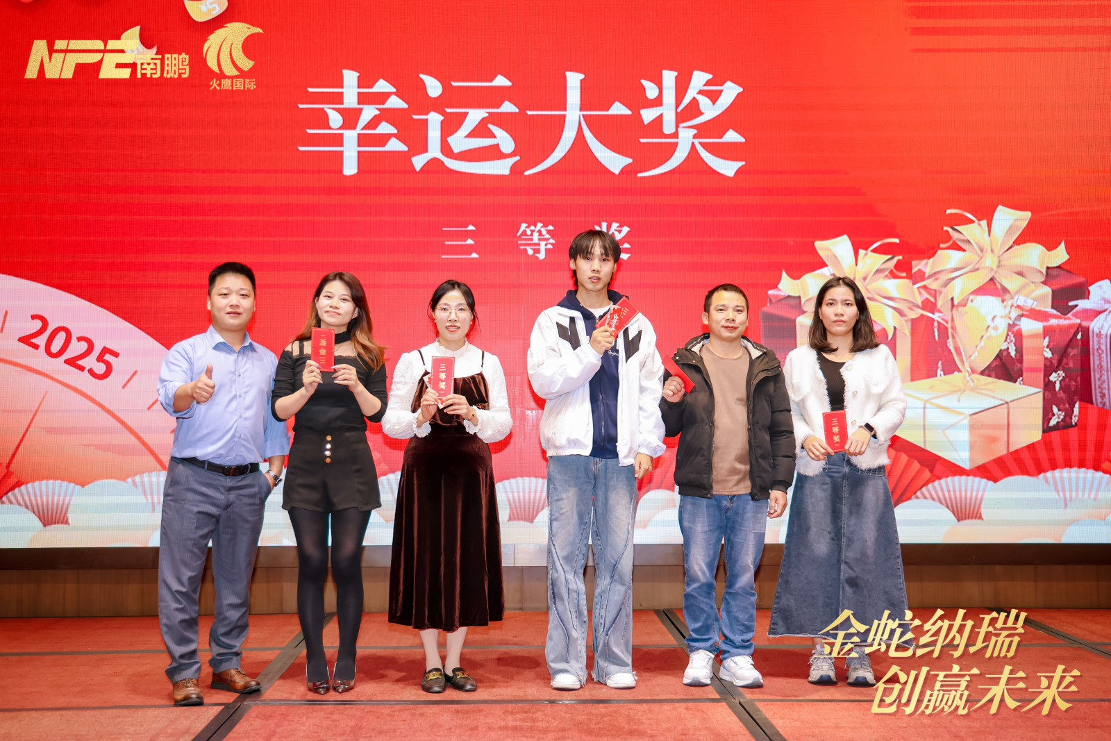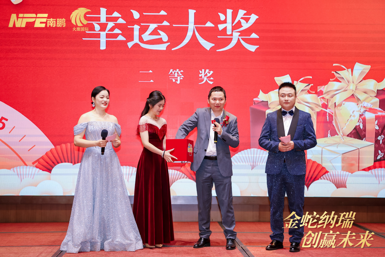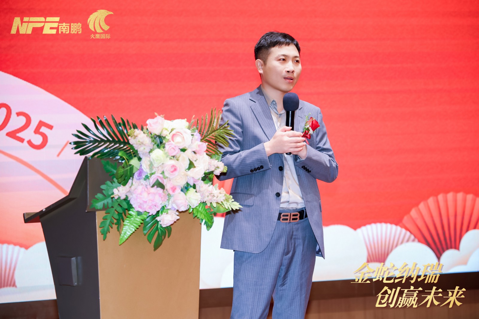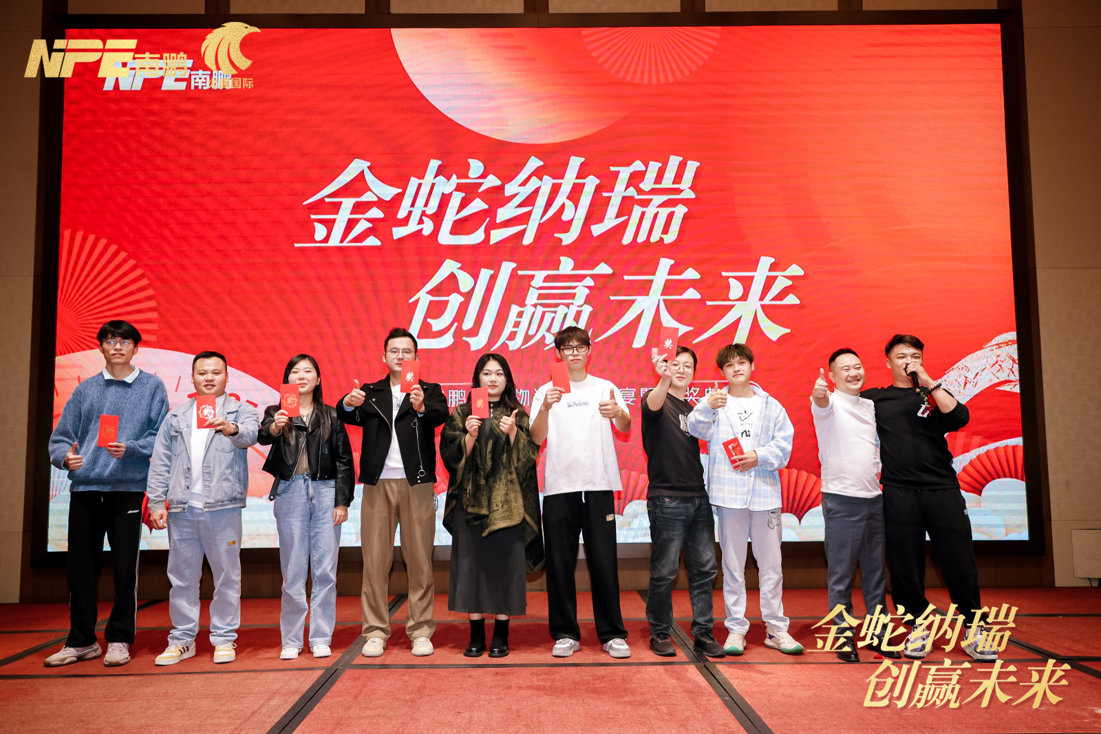 12月31日21:00,南鵬國際物流 “金蛇納端,創(chuàng )贏(yíng)未來(lái)”2025跨年盛典圓滿(mǎn)收官??缒晖頃?huì )當天,南鵬董事長(cháng)陳天輝、總經(jīng)理肖智士攜分公司總經(jīng)理耿傳奇、龍哲斌、陳浩、陳超、謝嬌嬌、呂順、羅友國,業(yè)務(wù)總監彭劍、林娜及全體伙伴,均以盛裝姿態(tài)出席此次盛會(huì ),彰顯團隊風(fēng)采,共襄盛舉。